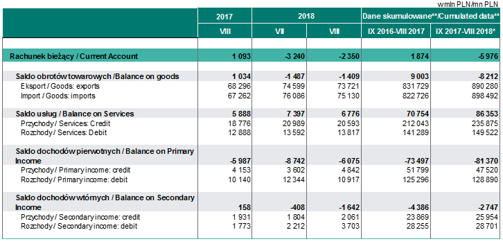 Warto w tym miejscu zauważyć, że dodatnie saldo usług dość wyraźnie przekroczyło ujemne saldo rozchodów pierwotnych, co jest niezmiernie ważne dla naszej gospodarki, bo przypomnę, że polska gospodarka jest mocno drenowana poprzez wypływ z kraju dochodów z inwestycji inwestorów zagranicznych. Żeby nie doszło do załamania waluty potrzebne jest źródło dochodów, czyli np. dodatnie saldo handlu zagranicznego. A w usługach jak widać jesteśmy wciąż mocni.