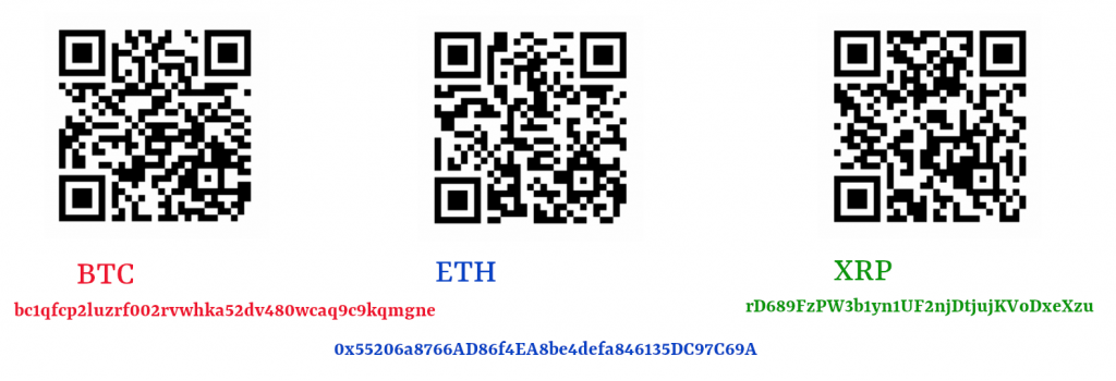 BTC : bc1qfcp2luzrf002rvwhka52dv480wcaq9c9kqmgneETH : 0x55206a8766AD86f4EA8be4defa846135DC97C69AXRP : rD689FzPW3b1yn1UF2njDtjujKVoDxeXzu