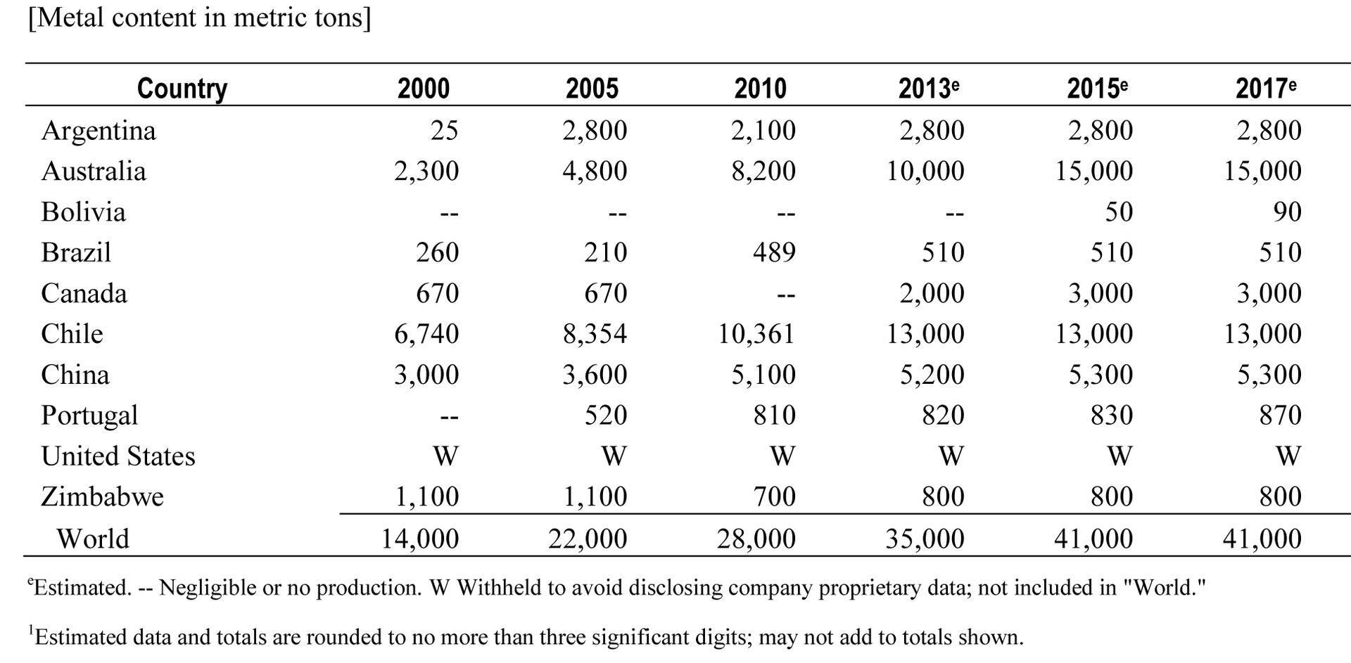 Do wy-listowanych krajów możemy dodać jeszcze Brazylię, Portugalię, Zimbabwe i Kongo, w których istnieje wydobycie - jednak nie na tak wielką skalę, oraz kilka innych posiadających zasoby (m.in. Czechy, Hiszpania, Rosja), ale ich nie eksploatujących, planujących eksploatację, pracujących nad infrastrukturą lub gdzie różne czynniki na chwilę obecną uniemożliwiają komercyjne wydobywanie.