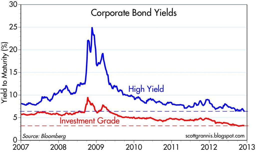 Rządowe obligacje są traktowane jako risk-free assets, czytaj rynek uważa iż emitent nie może zbankrutować. Dlatego też są one benchmarkiem dla innych instrumentów dłużnych w krainie, a różnica w rentowności pomiędzy długiem rządowym i innymi papierami dłużnymi to spread, zwanym też spreadem strachu. Chodzi tutaj o stabilność spreadu pomiędzy obligacjami rządowymi a inwestycyjnymi i śmieciowymi. Po naszemu znaczy się ile płacą teoretycznie risk-free governments bonds i corporate bonds z poddziałem na investment grade i junk grade.