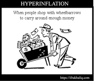 A gdybyś został zapytany przez dziecko "Jak rozpoznać hiperinflację?" to powiedz mu, że jak będzie widziało ludzi wożących pieniądze na zakupy taczkami to wtedy będzie wiedziało że panuje hiperinflacja :)