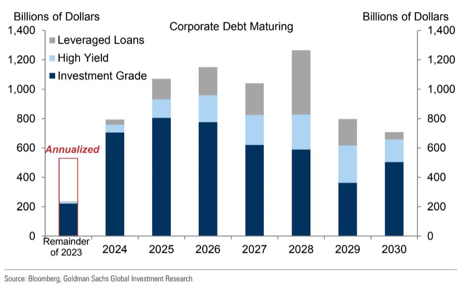 - 230 mld USD (525 mld USD w ujęciu rocznym) długu korporacyjnego zapadającego w pozostałej części 2023 r.